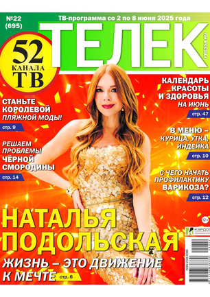 Еженедельник «ТЕЛЕК» является доброй семейной газетой, увлекательным рассказчиком и хорошо информированным советчиком. С ней всегда можно провести время интересно и с пользой.Подробный телегид позволяет читателям хорошо ориентироваться в мире телекино и телепрограмм.