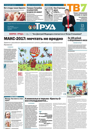 Одна из старейших общественно-политических газет (издается с февраля 1921 года). Корреспонденты «Труда» ежедневно рассказывают читателям о политике, культуре, спорте, экономике, жизни общества, самых интересных новостях дня и многом другом. Издание рассчитано на широкий круг читателей.
