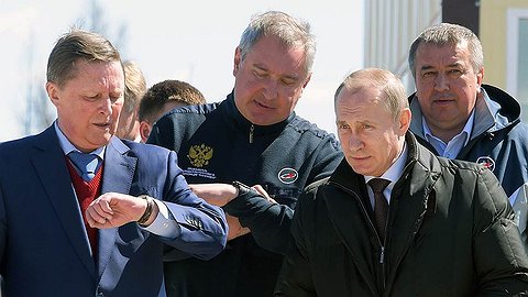 Вот-вот, я знал, на наблюдательном пункте должны появиться вице-премьер Дмитрий Рогозин, глава президентской администрации Сергей Иванов, глава Роскосмоса Игорь Комаров и Владимир Путин. Тоже вчерашний состав.